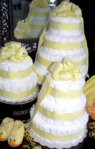 "Classic Pastel Baby Shower Diaper Cake (3 Tier, Yellow) Low price" Feature