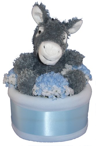 "Blue Donkey 1 Tier Diaper Cake w/ Pampers Swaddlers, 10" Stuffed Animal, and Precious Cargo Baby Apparel Discount" Overview