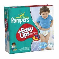 Help potty training make sense both day and night with Pampers Easy Ups Trainers! Pampers Easy Ups Trainers train without the mess during the day and help protect against leaks at night. The Feel 'n Learn Liner helps your little boy feel when he's wet, so he can learn to stay dry. And Pampers Easy Ups Trainers hold 25%* more than the leading Huggies Training Pant**, he can wear them through the night, too. BRHelps potty training make sense during the day and helps protect against leaks at night.. BRHolds 25%* more than the leading Huggies training pant. BRHe can even wear them at night! BRThe Feel 'n Learn Liner helps your little boy feel when he's wet, so he can learn to stay dry. BRFeaturing fun Diego training pant graphics. . . . . BR*Based on Pampers Easy Ups Trainers Size 4